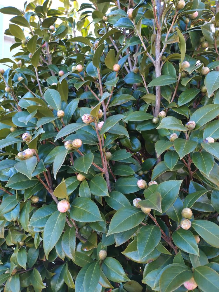 ❶❷現在55歳の方の卒園記念樹乙女椿が今年も蕾を沢山付けています🩷🍀