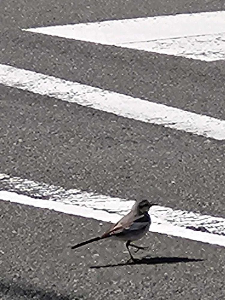 ❺ハクセキレイ🐦が横断歩道を渡ります
