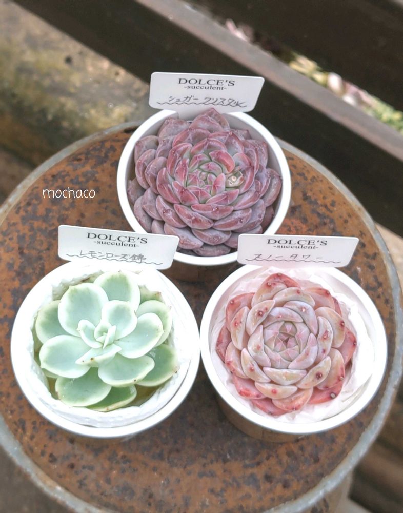 mochacoさんのエケベリア・レモンローズ錦,シュガークリスタル,スノータワーの投稿画像