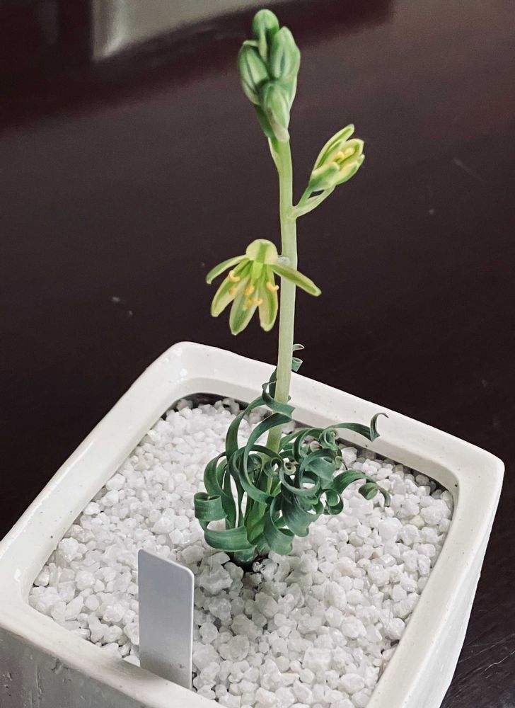 お。わが家のアルブカ コンコルディアナも花が咲いてきたよ。