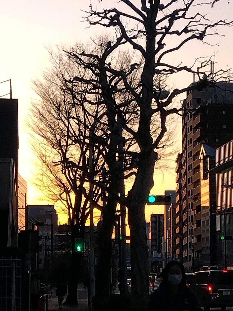 スーパーの帰りにオレンジ色に染まり始めた空、、、