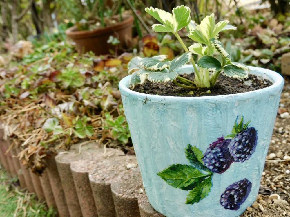 イチゴの葉っぱもリメ鉢もかわいいです💕