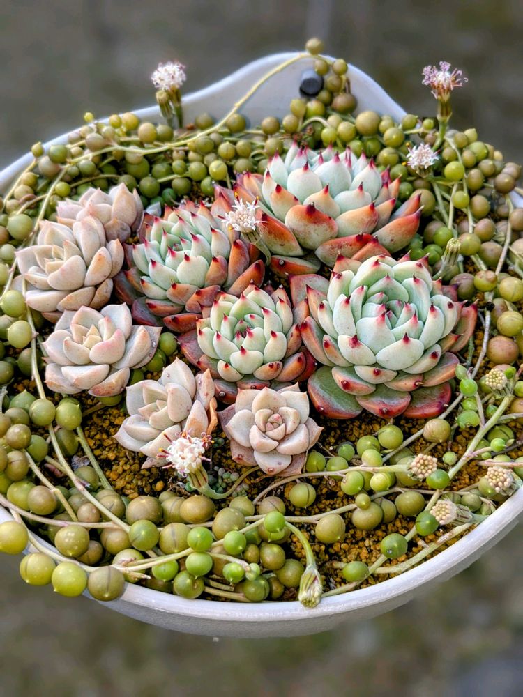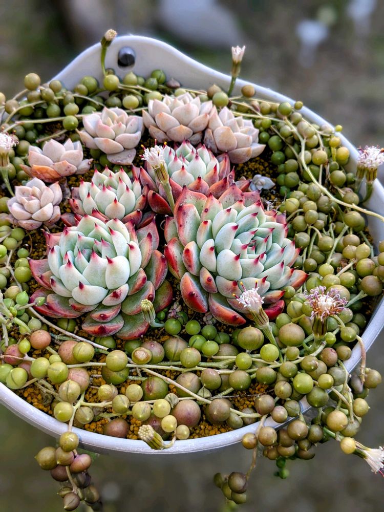①お気に入りの寄せ植えのグリーンネックレスさん❣️たくさん可愛い💕お花を咲かせてるよ〜💕🥰💕