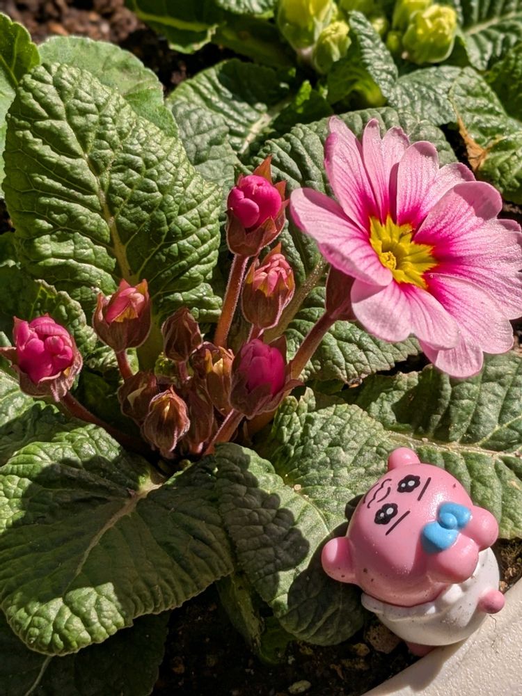 ④プリムラジュリアンさん❣️わたちと同じ色の可愛い💕お花🩷が咲いてる〜とおぱんちゅうさぎちゃんが見上げてるよ〜✨(*^^*)