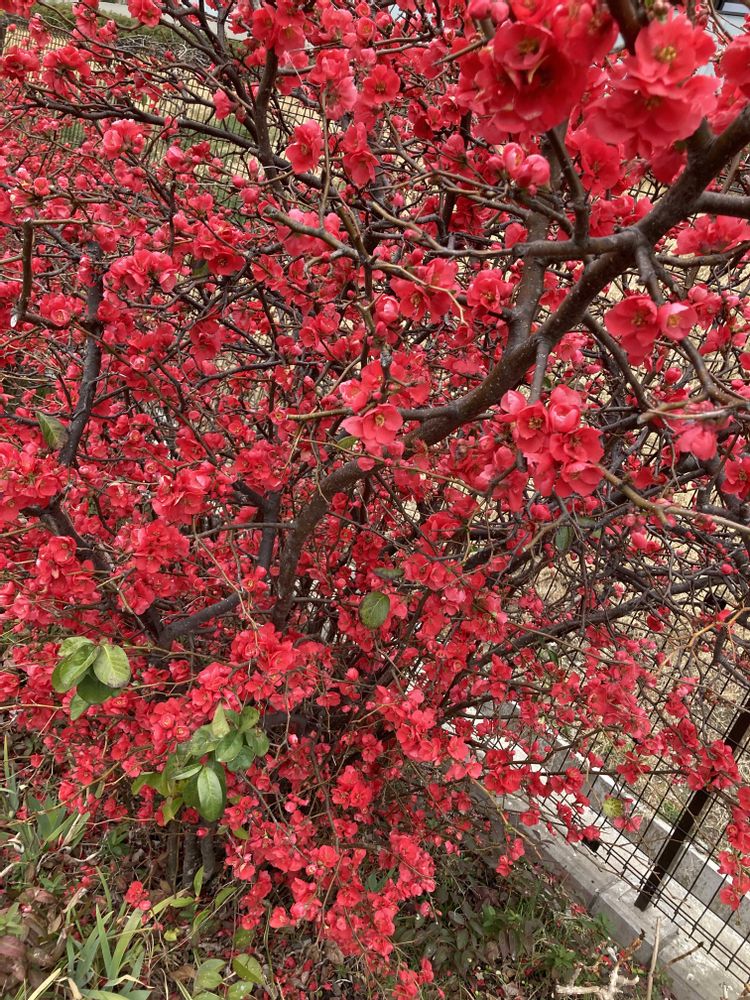 いたち川ウォーキング🚶🚶遊歩道の♥️真っ赤なボケ…可愛い水仙♡