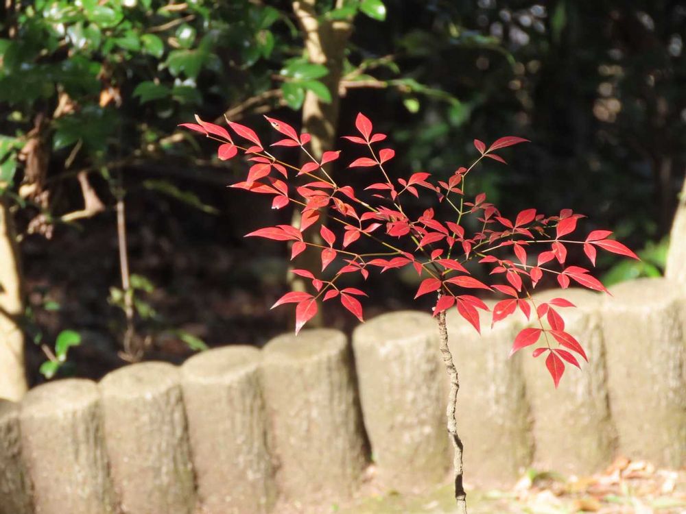 ☆1 紅梅する南天の葉っぱとアスパラガス