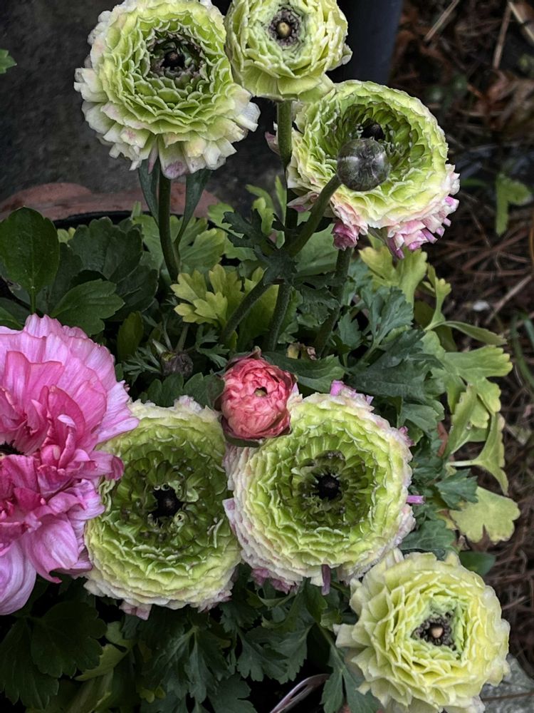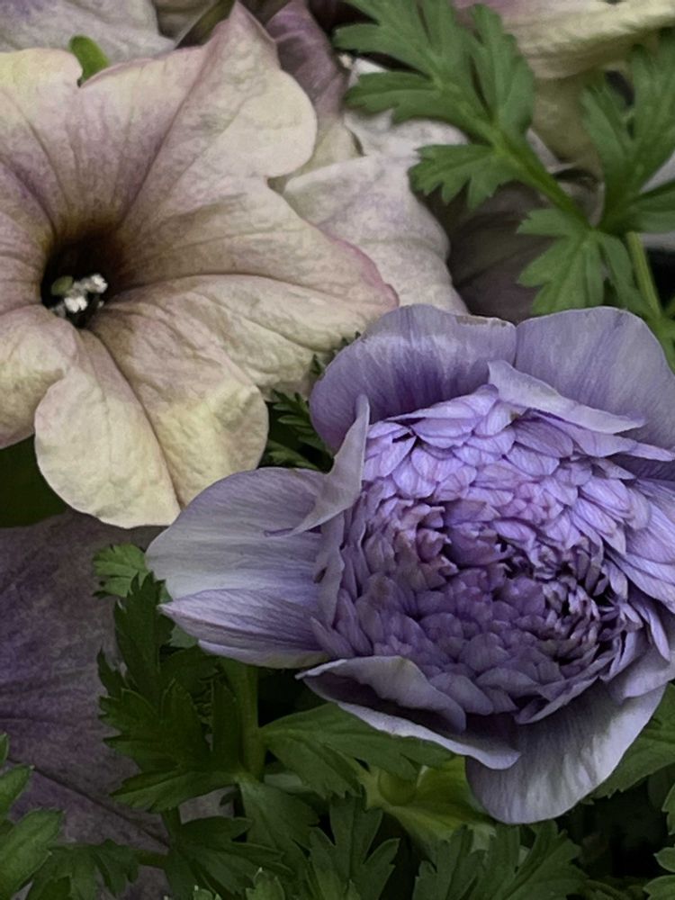 ❶アネモネ モナリザ&ラナンキュラスラックス ベスタリス✨✨たびたびで恐縮デス❷ラナンキュラス イカロスローズピンク✨✨❸ラナンキュラスアラクネJr.もう一つのアラクネさん、今こんな感じです、ハィ🙋🏻♀️❹アネモネ 凛々花✨✨落ち着いた藤色😘❺ラナンキュラス エトワール 上品なクリーム色。なんだけどスマホだとなんか違〰️う🤨