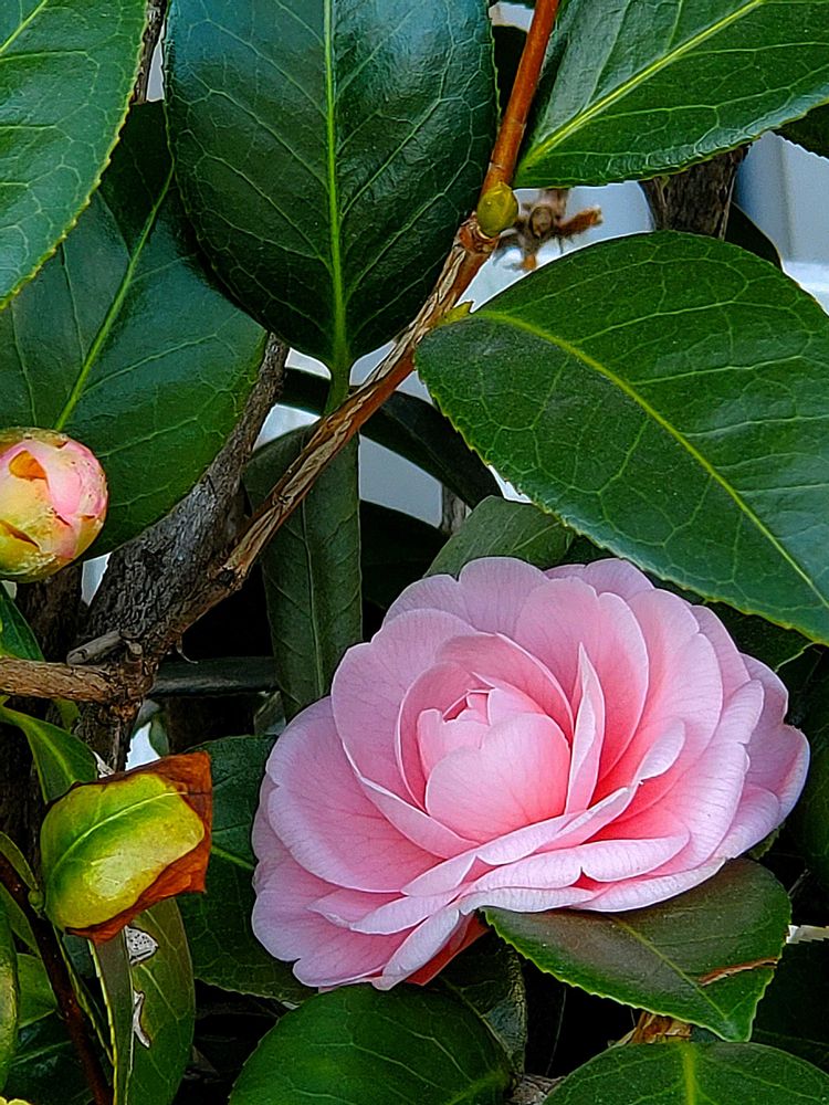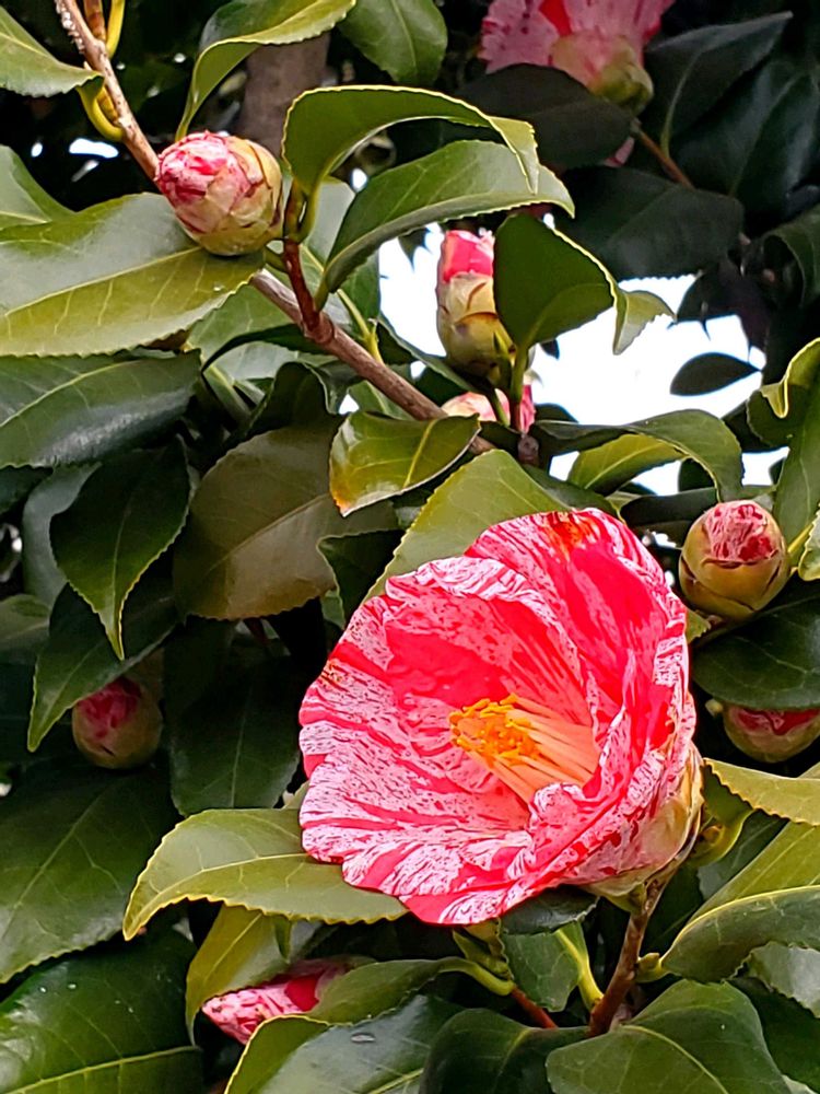 ピンクの乙女ツバキも素敵ですが、絞りのツバキ素敵ですよね❗
