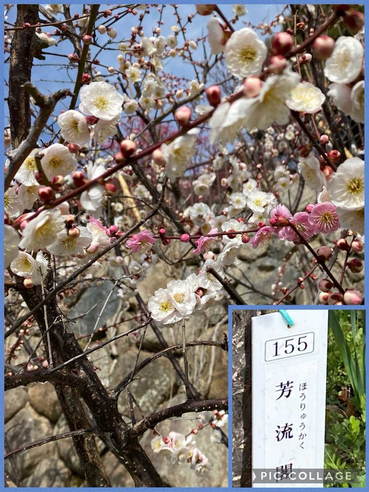 公園に入って直ぐに見たのは白とピンクの花の木で(思いのまま)と思いましたが、(芳流閣)の名札が付いていました。