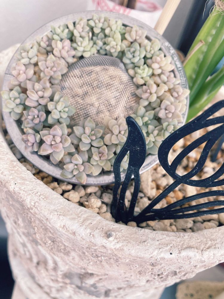 茶こしでリースにしている方の投稿をみて、うちにも間違って買ってしまった茶こしがいる!と奮闘して作ってみました🌱