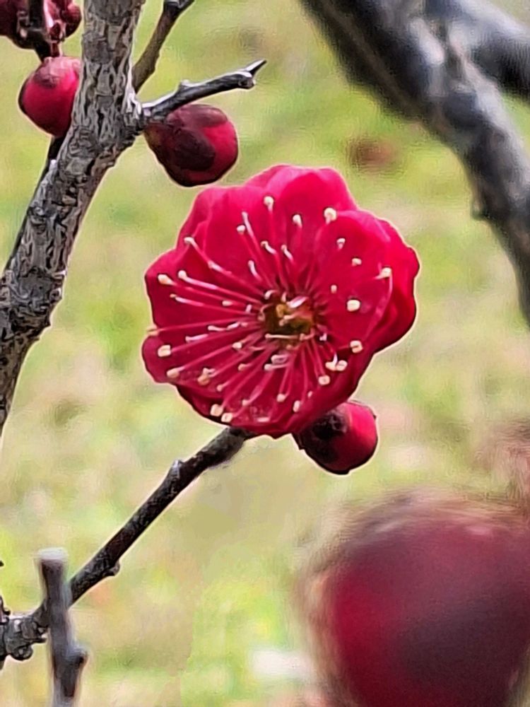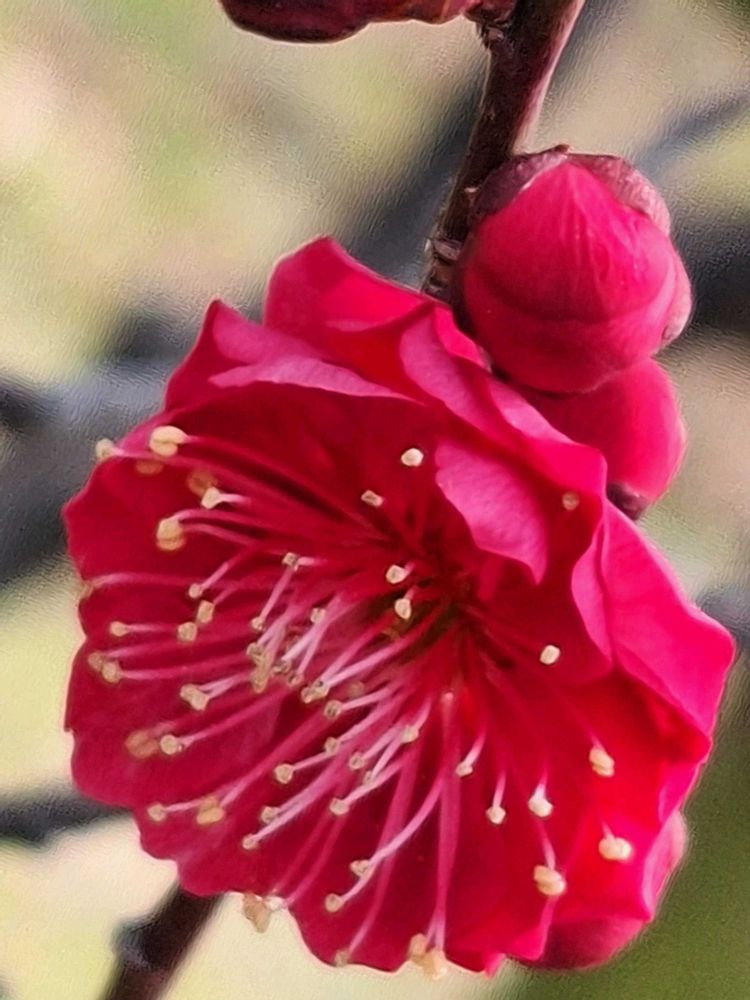 ここまで鮮やかな紅梅は、なかなかありませんね〜