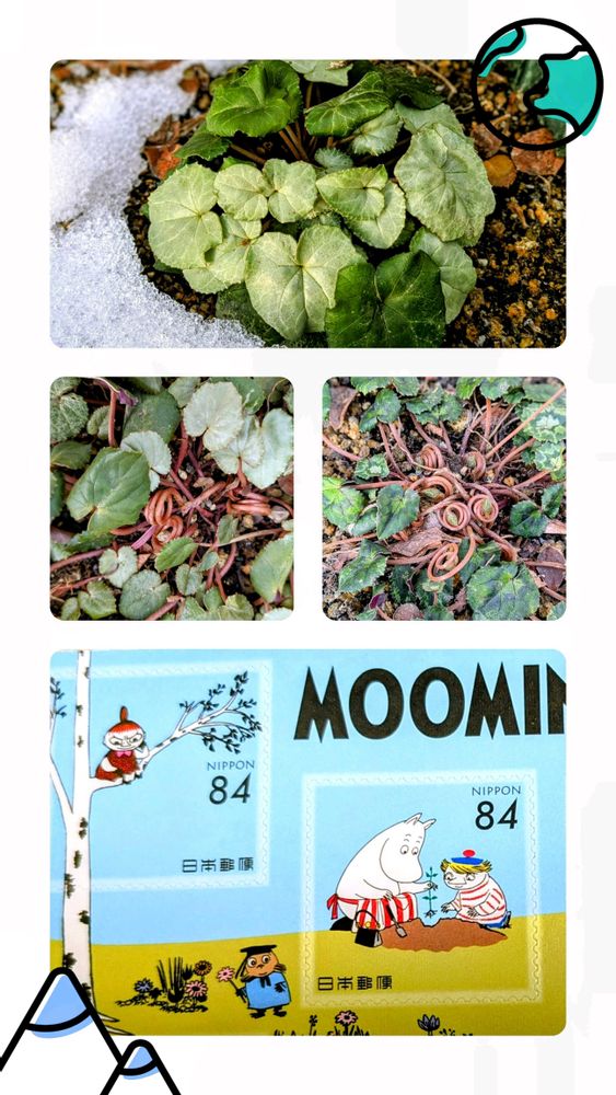 シクラメンさんの冬越しの仕方に 感心しきりです。こんなふうにくるくると茎を巻いて、雪の下で眠ってるのですね🌀 丸まっていた方が暖かいからでしょうか😄