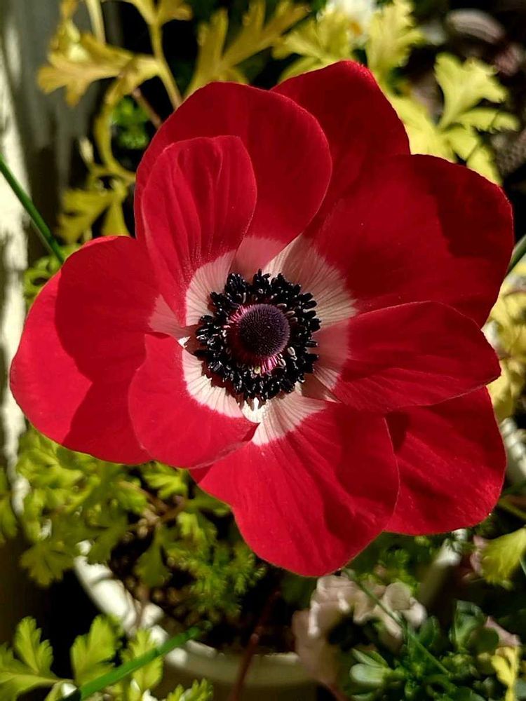 初開花のアネモネさん💞やっと咲きましたヽ(=´▽`=)ノ❤️蕾が上がってきてそのままずっと待機してました😆🌱いつ咲くんだろうって待ってました🥰大きな花です❤️風に揺れて可愛いです❤️