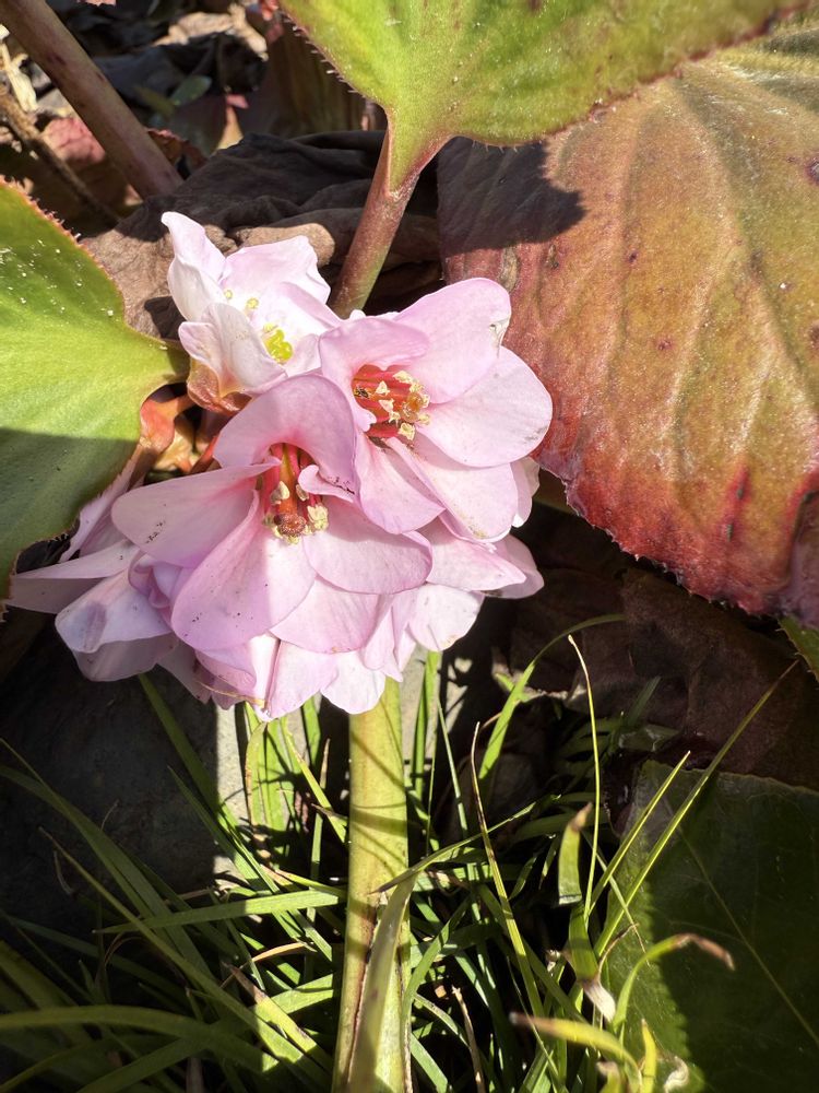 小さなな庭の足下にピンクのヒマラヤユキノシタが咲き始めました。
