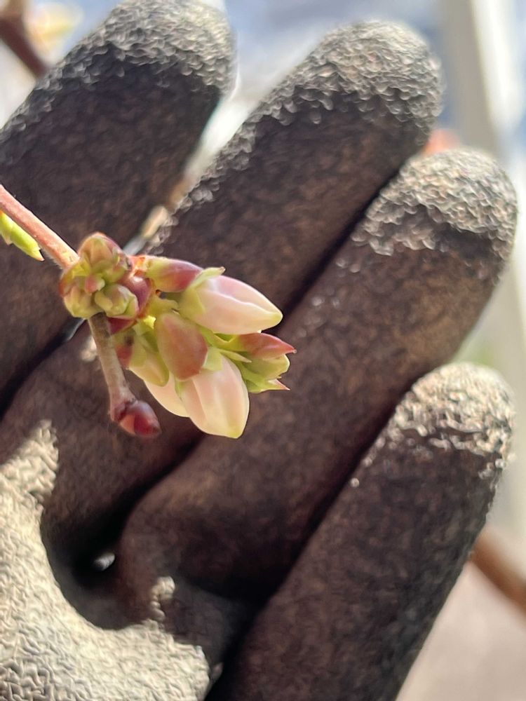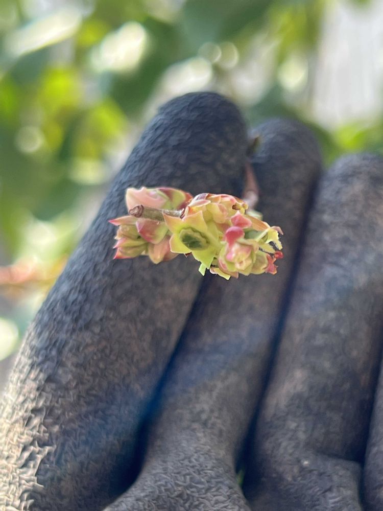 開花した順にオニールの花粉をメイクブラシにて人工授粉しています。