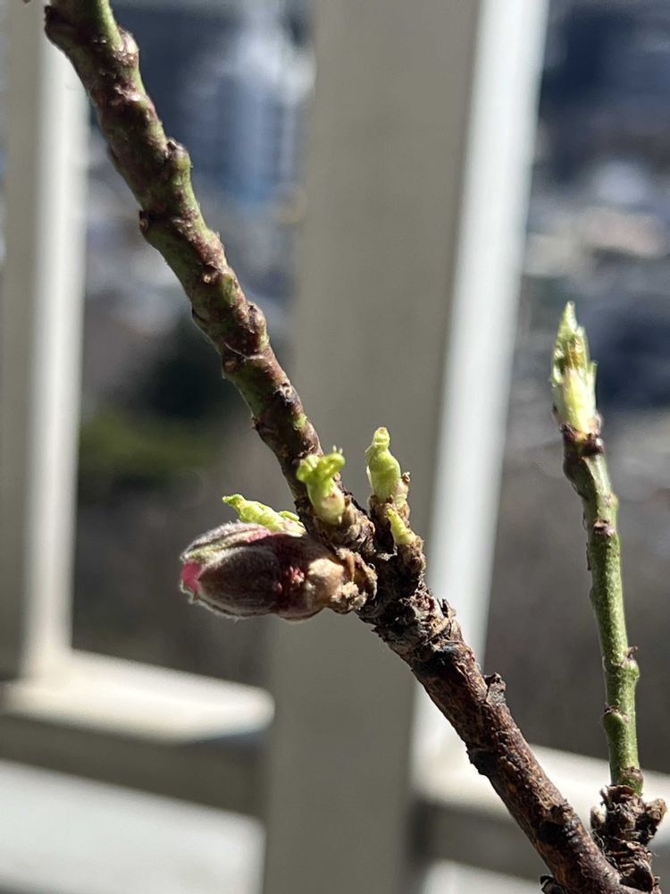 みきドワーフも蕾のひとつからピンクの花びらが見えきました。そろそろ咲くのかなぁ🌸