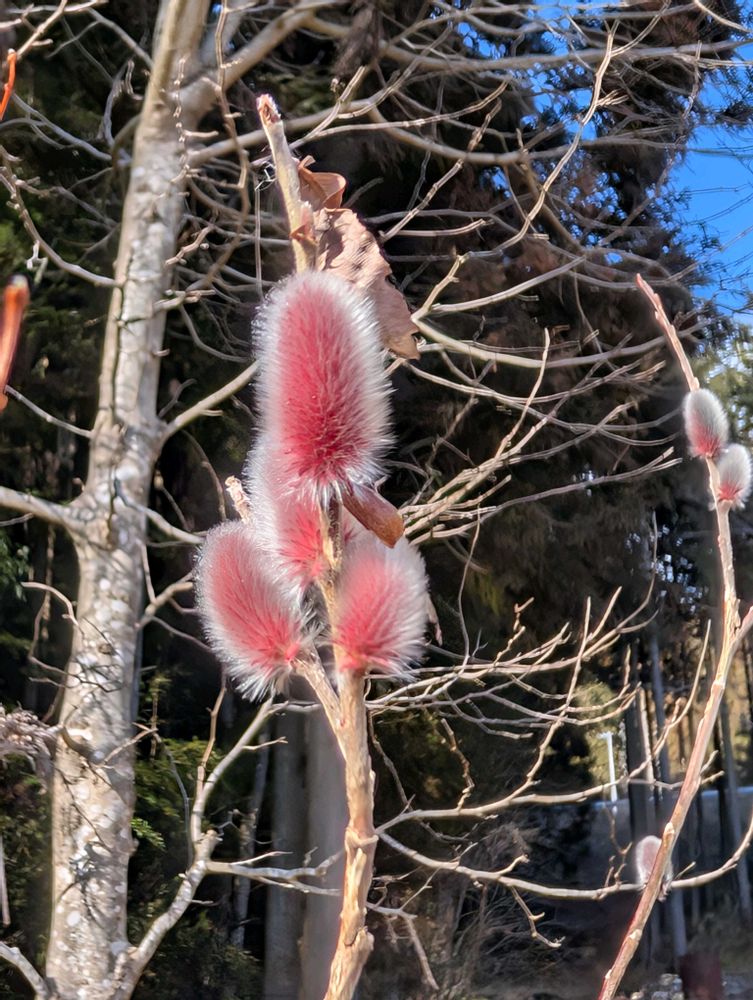 私も昨日植物園でこの赤いネコヤナギを見てきました♪