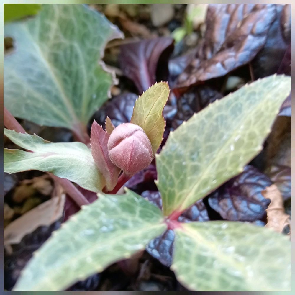 ①クリスマスローズリビタス…夏場瀕死状態になり、日陰の花壇に地植え…今日、蕾を発見🥹💕