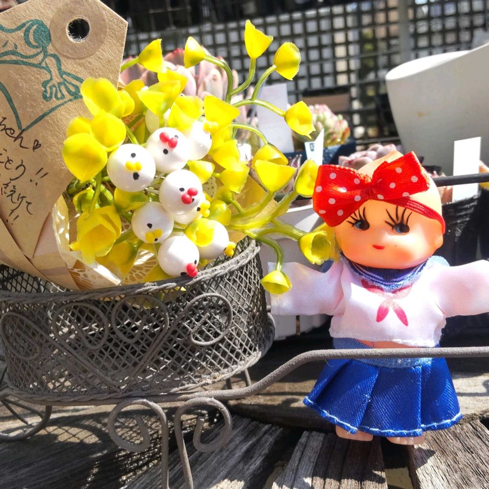 💐は造花なんだけど、黄色い細かいお花が着いてるから、わたしは勝手にミモザと思っている😂💕