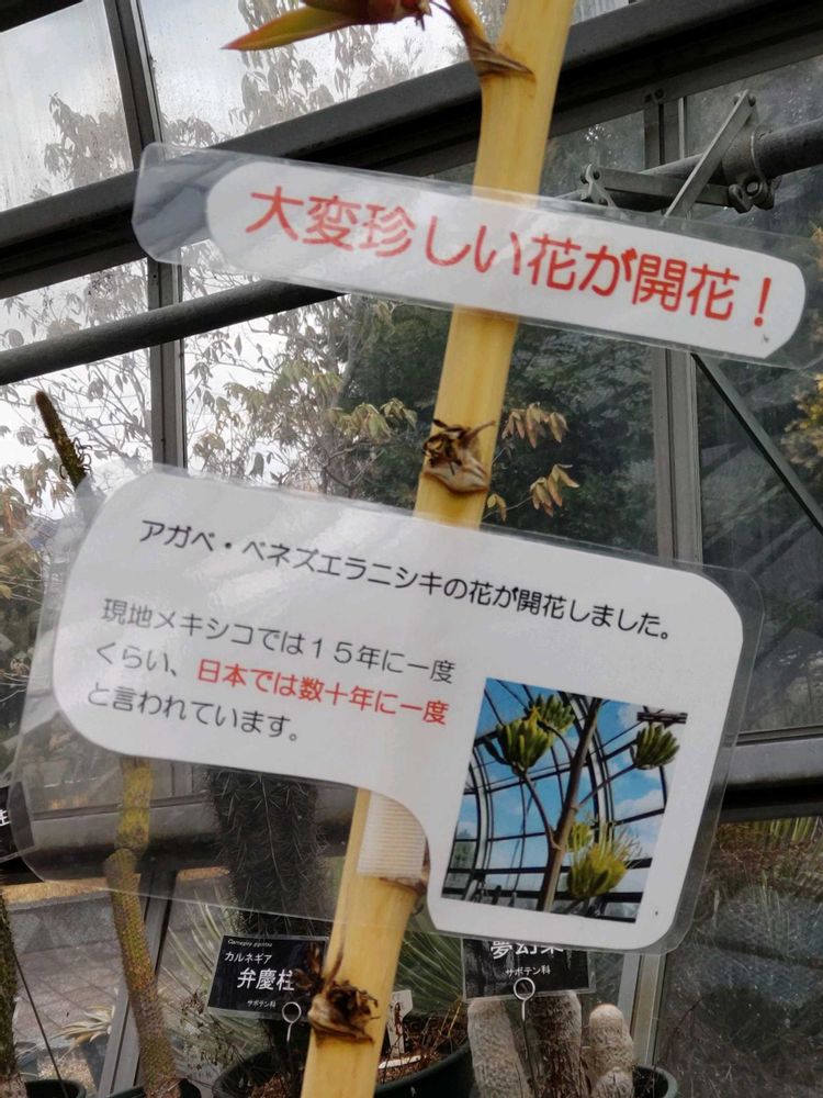 アガベ ベネズエラニシキのお花が咲いていましたよ 日本では数十年に一度しか咲かないそうです😀