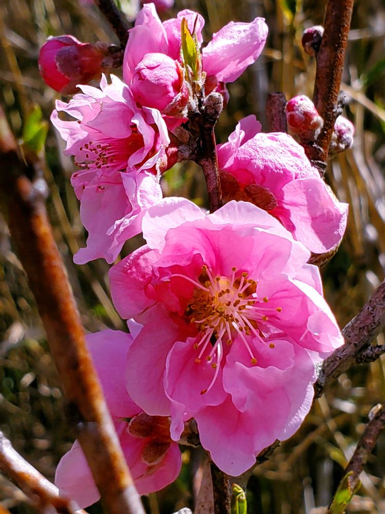 1️⃣鉢植にした挿し木の桃の花が、蕾を沢山つけて咲いています🍑🍑🍑😆