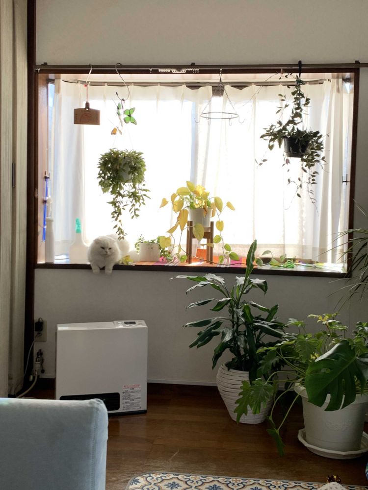 この窓際ホヤもニャンもポトスも最高なんだろうな🥰