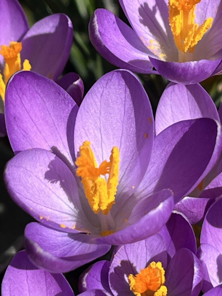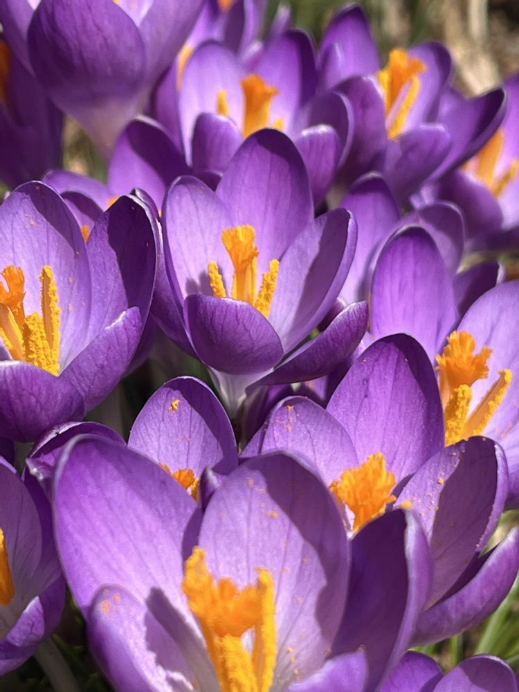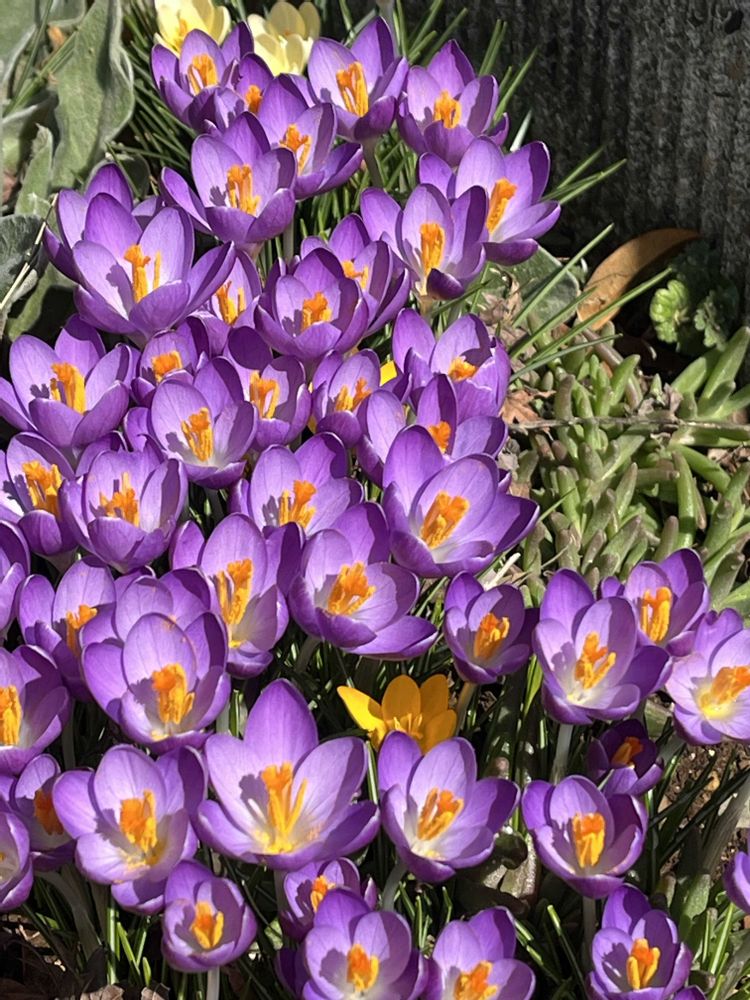 紫🟣のクロッカス、見事にたくさん咲いてるね〜😄すご〜い(((o(*゚▽゚*)o)))♡