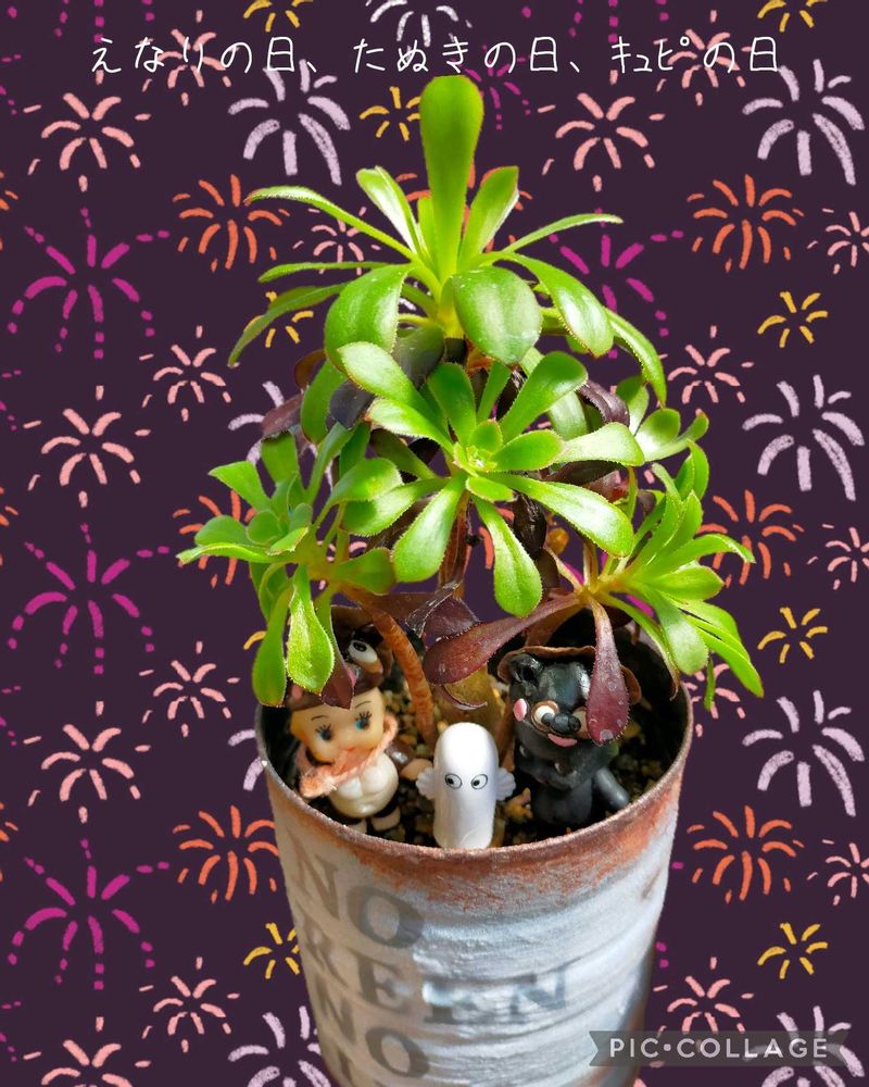 ピンクのタヌキちゃんに植えていた多肉ちゃんが今朝消えていて、盗まれたのかと思って焦ったよ〜😅💦