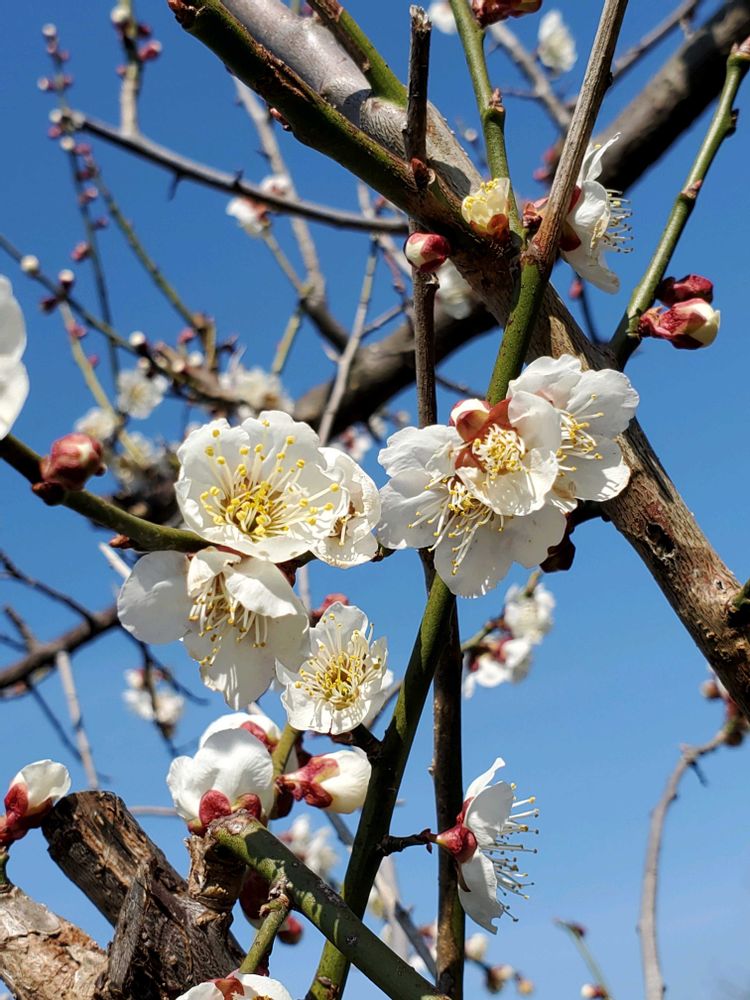 庭の花梅より少し遅れて咲いた、畑の南高梅も見頃に