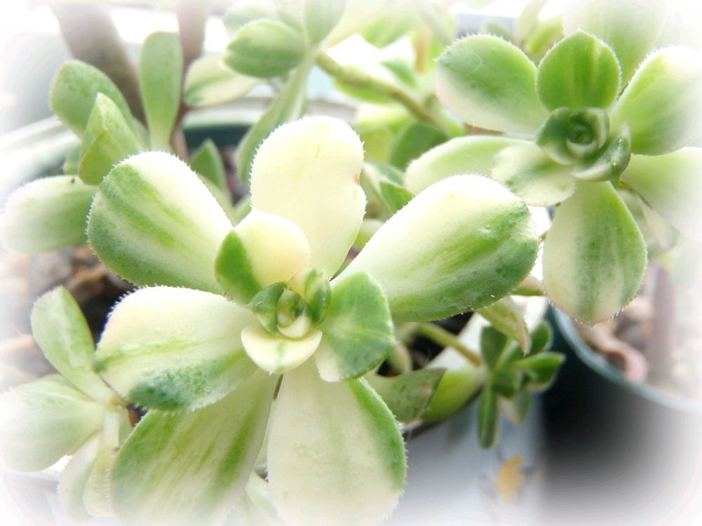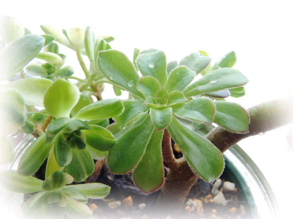 室内組も早く外に出したいのですが、アエオニウム、油断したら凍傷みたいになって、真ん中が、脇芽もあるので様子見ています