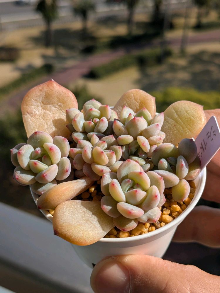 ④ジェイドモンロー(dolche)葉挿し組。挿すところがないとは言え、s-cupに6枚はやり過ぎか💦親株は室内管理ででかい葉っぱ出てきたので😭コレはコレでこじんまりしていて可愛い😘