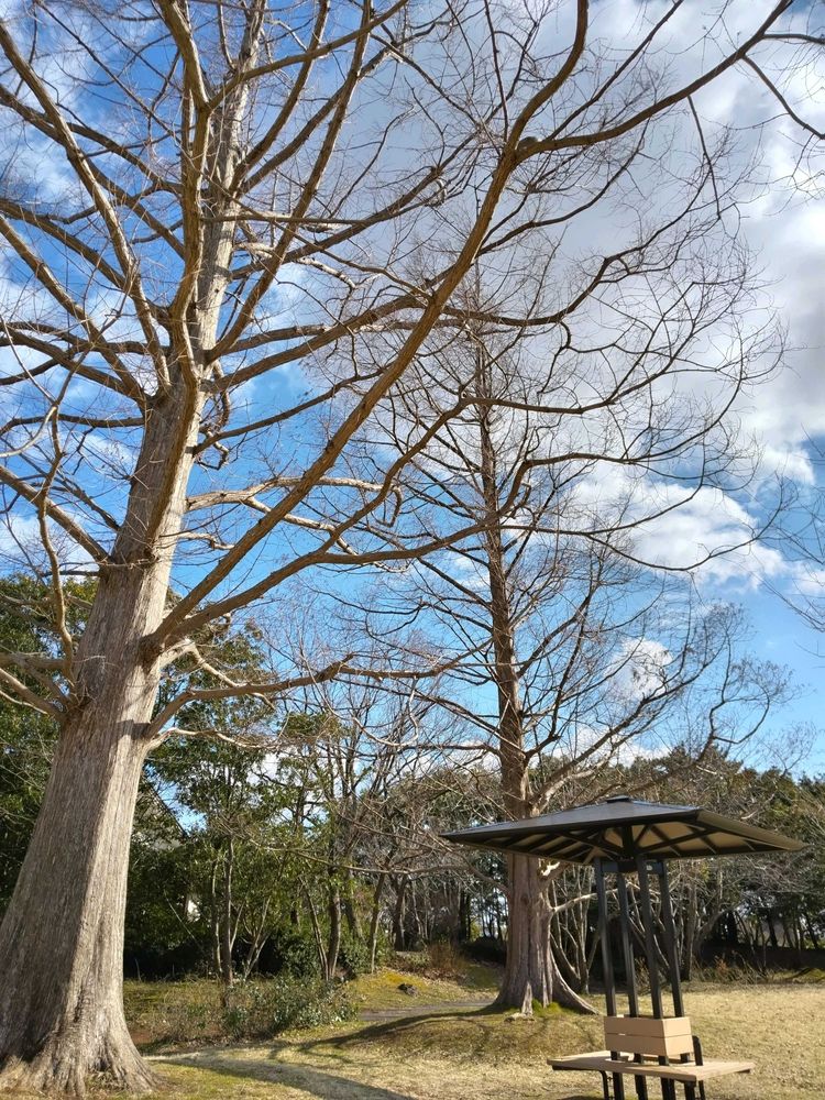 🍁近くの公園のメタセコイヤが、暖かい日差しに映えて…