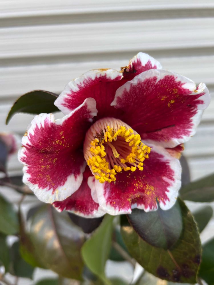 さん、ご覧頂きありがとうございます。濃い花弁脈が浮き立って白覆輪とのコントラストがいいんです。是非実物を見ていだだきたい椿です。