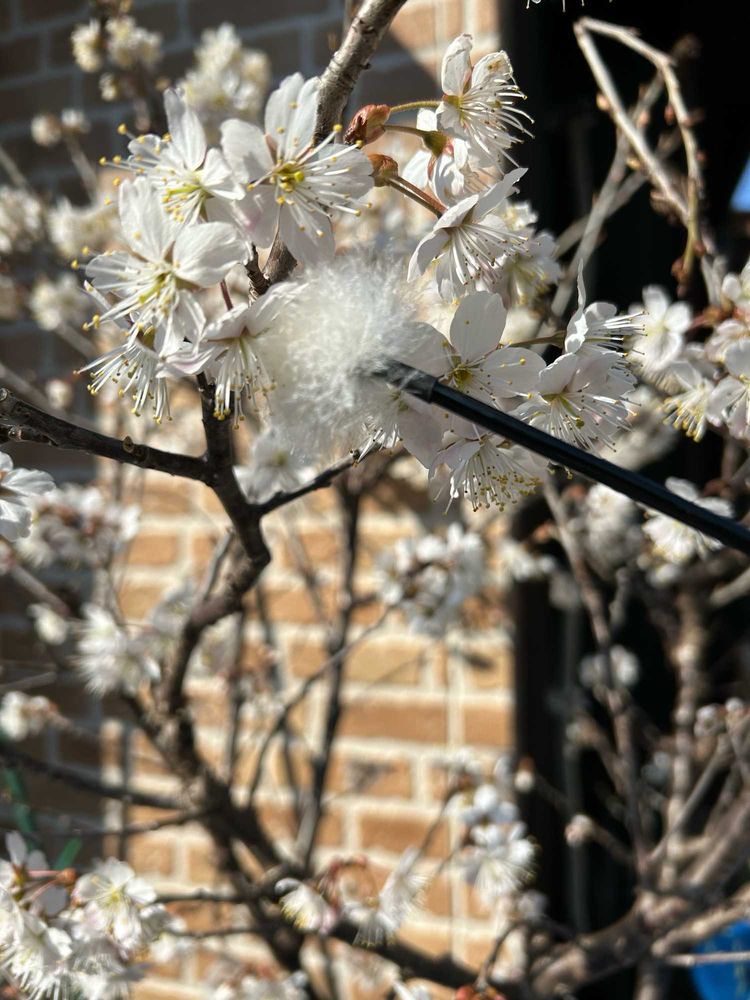 人工授粉してたら、ミツバチがやって来たのでバトンタッチ🤭