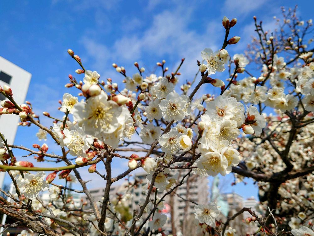今日の午前中、市内を散歩途中に見かけた白梅。