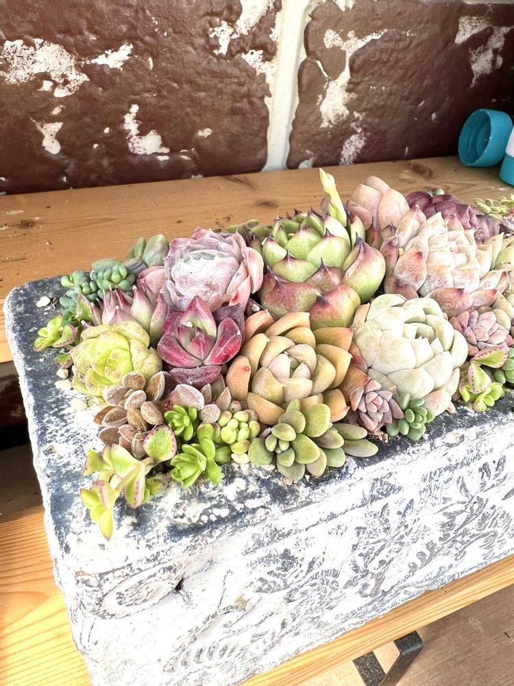 ポカポカと気持ち良かったので、遅出の出勤前に冬の間にスカスカになっていたお気に入り鉢の寄せ植えをお直ししました😊