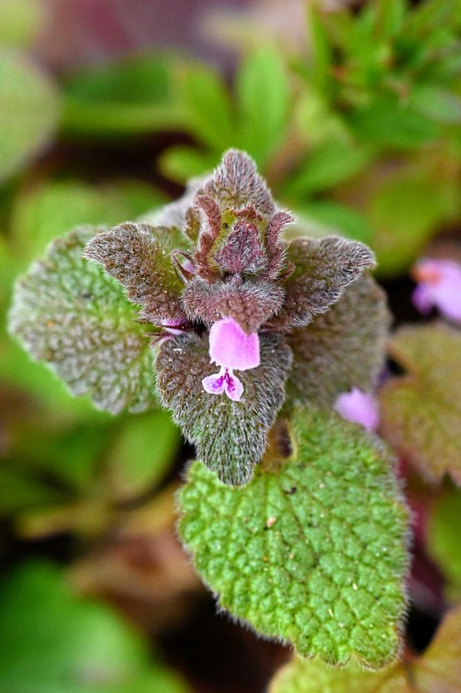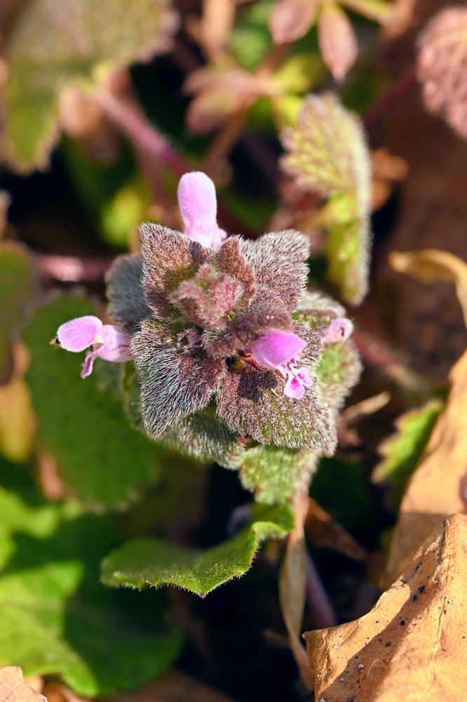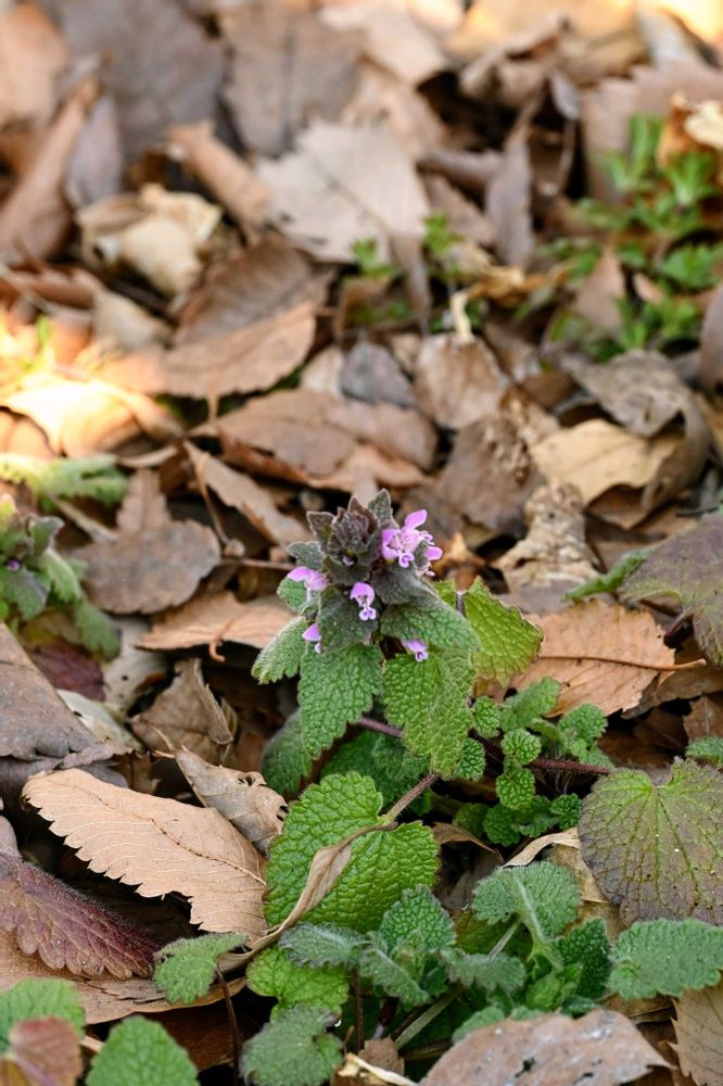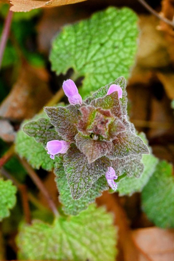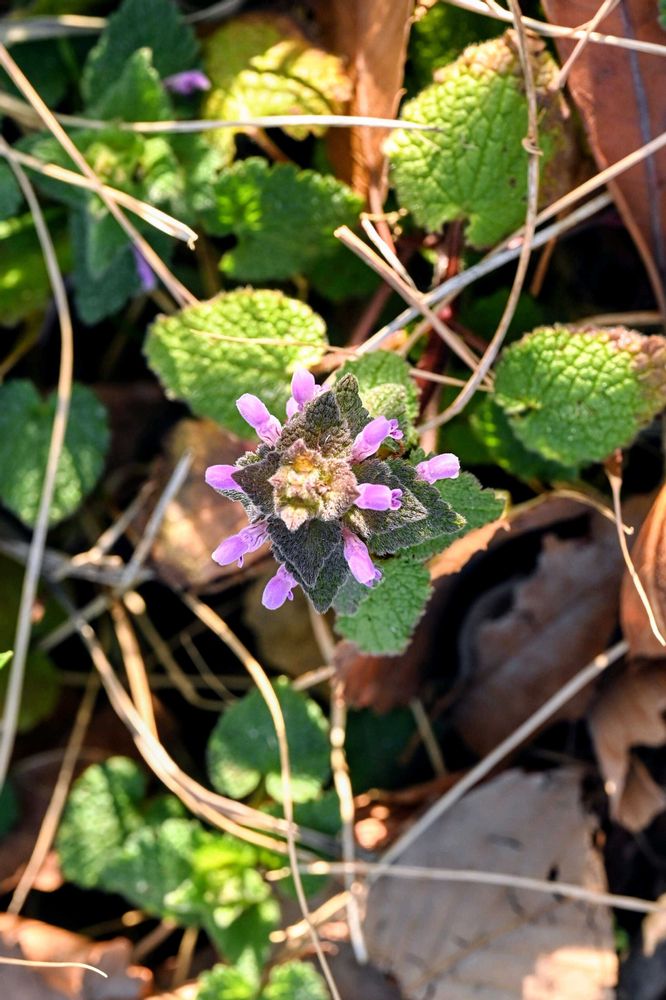 3枚目、ヒメオドリコソウの草丈が低く花が下向きなので、上から見るとこんな感じです。