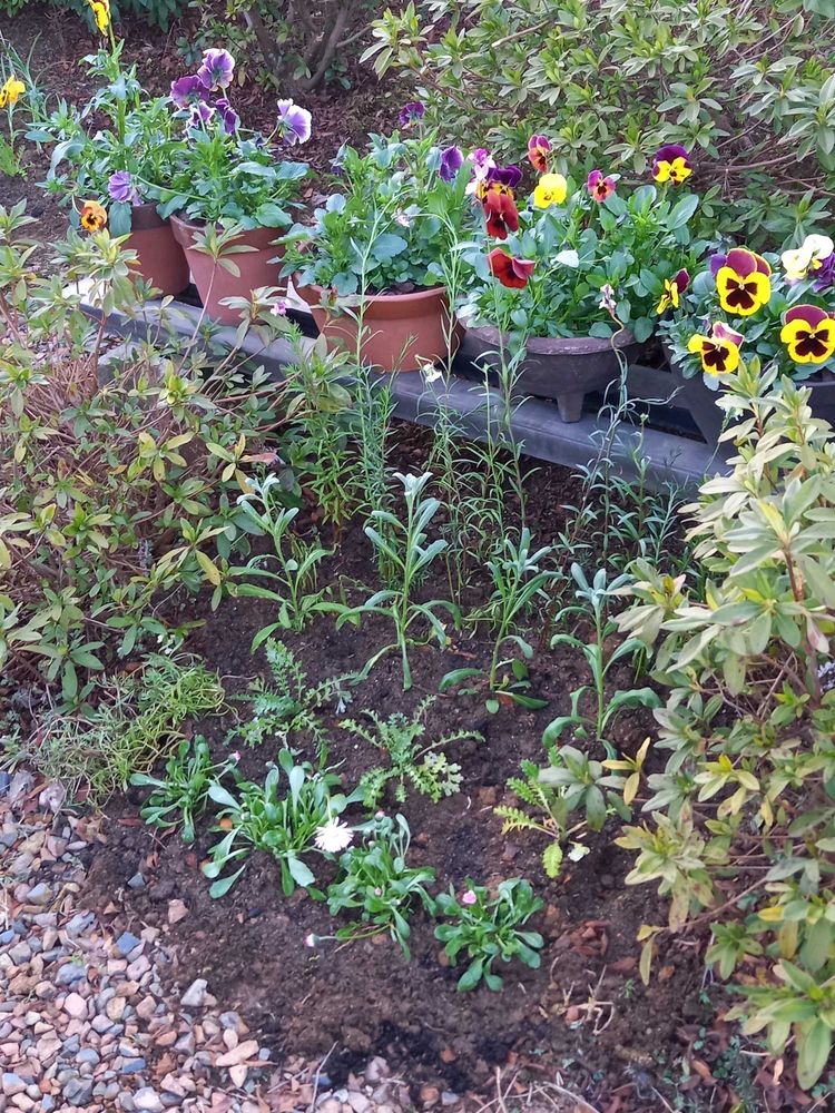 家のムギナデシコ、地に直接種撒いた芽がいっぱい出ていたのに、雪をかぶってしまって…