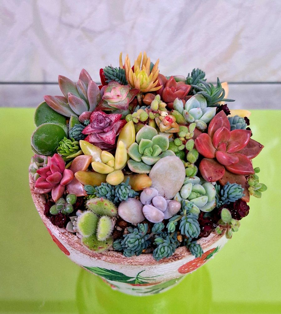 とっても可愛いリメ鉢と多肉の寄せ植えが完成しましたね😁💕💕