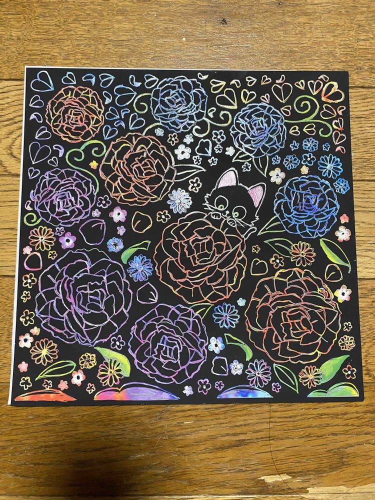 このスクラッチアートは、30センチ弱の四角よ🪯。