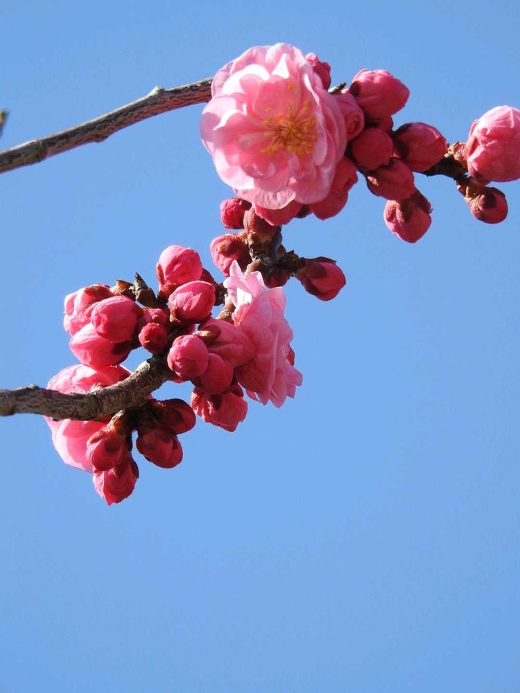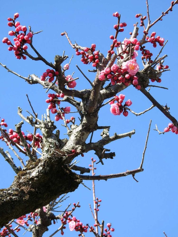 青空をバックにピンクの梅の花映えて素敵ですねー🌸🌸🌸