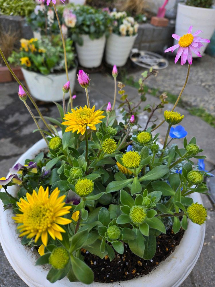 …寒かった、ので少し様子見て晴れ日に寄せ植え作りました~