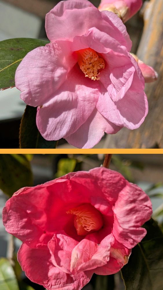 侘助椿と侘芯椿、ピンクと紅の色の違いはあれど、似てるなぁ…って思って並べてみました🤗