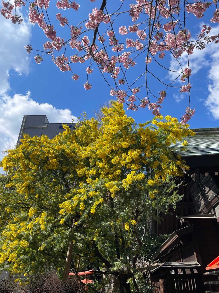3/9 行って来ました蔵前神社。ミモザも桜も満開😍