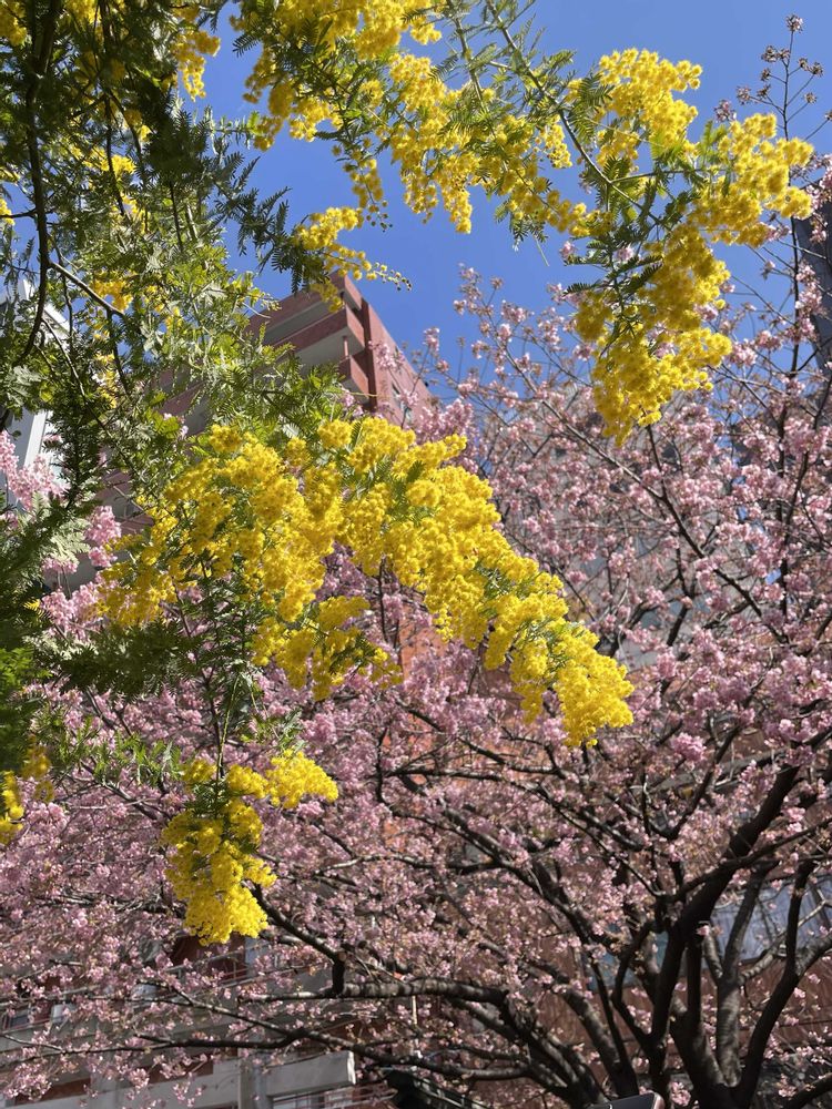 ミモザが大きくて綺麗✨ですね。桜🌸のピンク色とのコラボで春を感じさせてくれますね。