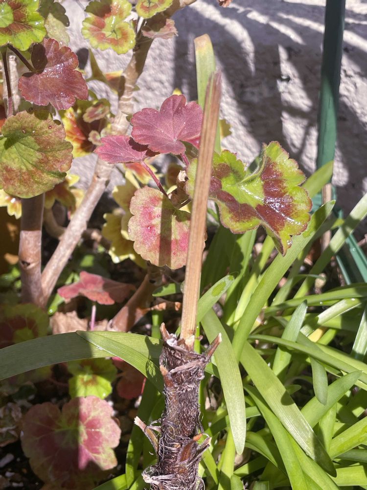観音竹?!枯れたかなと扇子を🪭開けるように触ってみると 中が緑あり…新葉だと期待し見守ることに。
