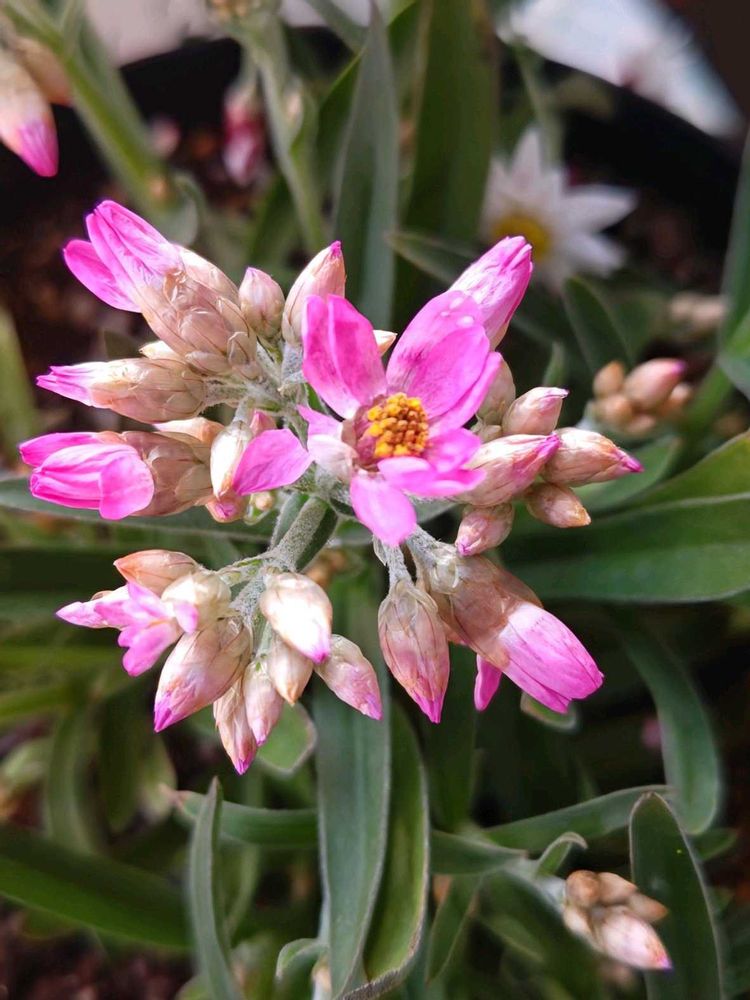 1月の終わり頃、スーパーの花コーナーで出会った、ヘリクリサム🏷️。私のヘリクリサムのイメージは、ムギワラギク。花びらの質感はカサカサして同じ。ペーパーカスケードも同じヘリクリサム属ですね。