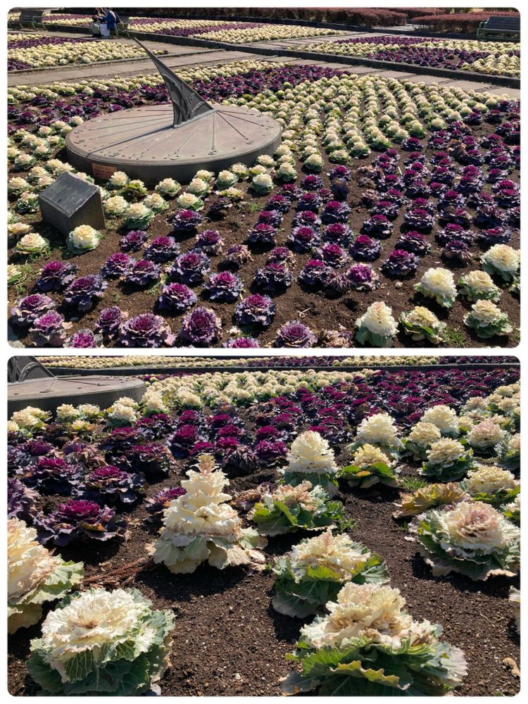 公園の花壇の「ハボタン」はもう直ぐ植え替え時季。