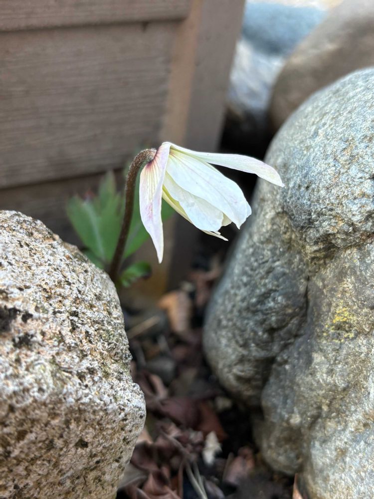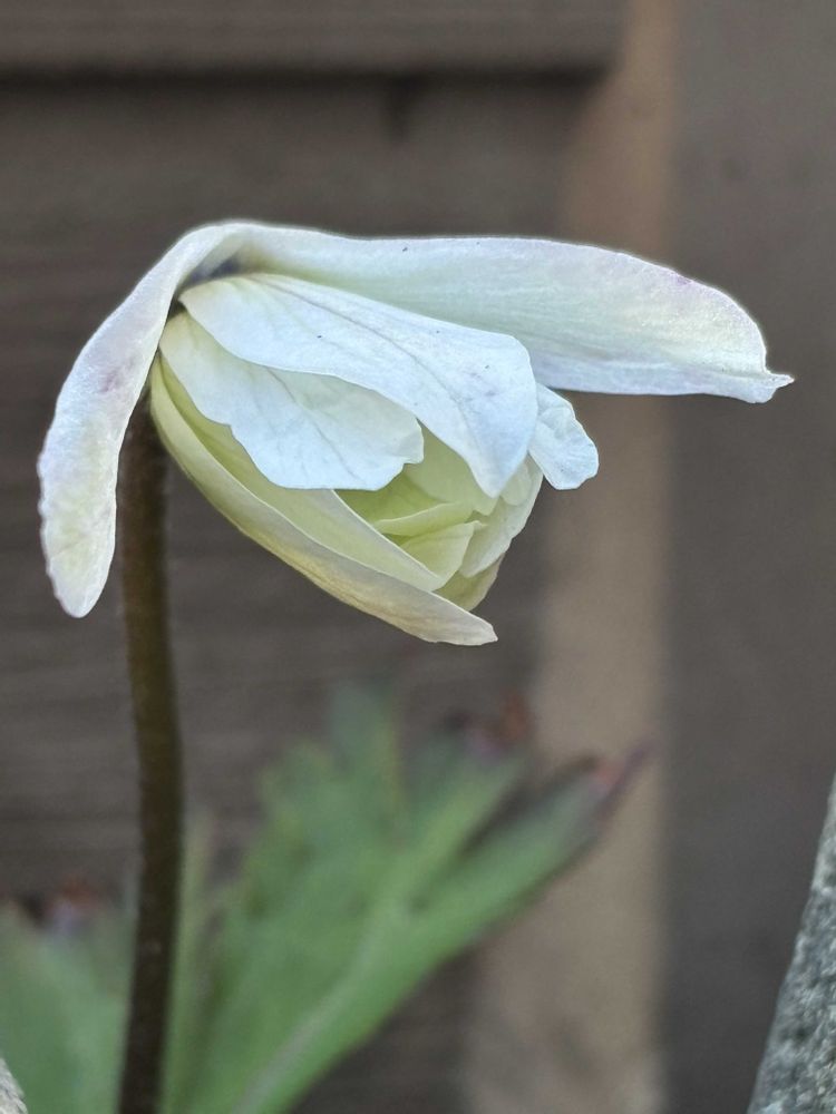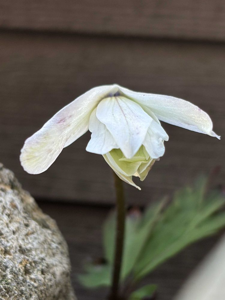 花壇の菊咲一華(キクザキイチゲ)が中々咲かないねと思っていたら、物陰で咲き始めてました💦