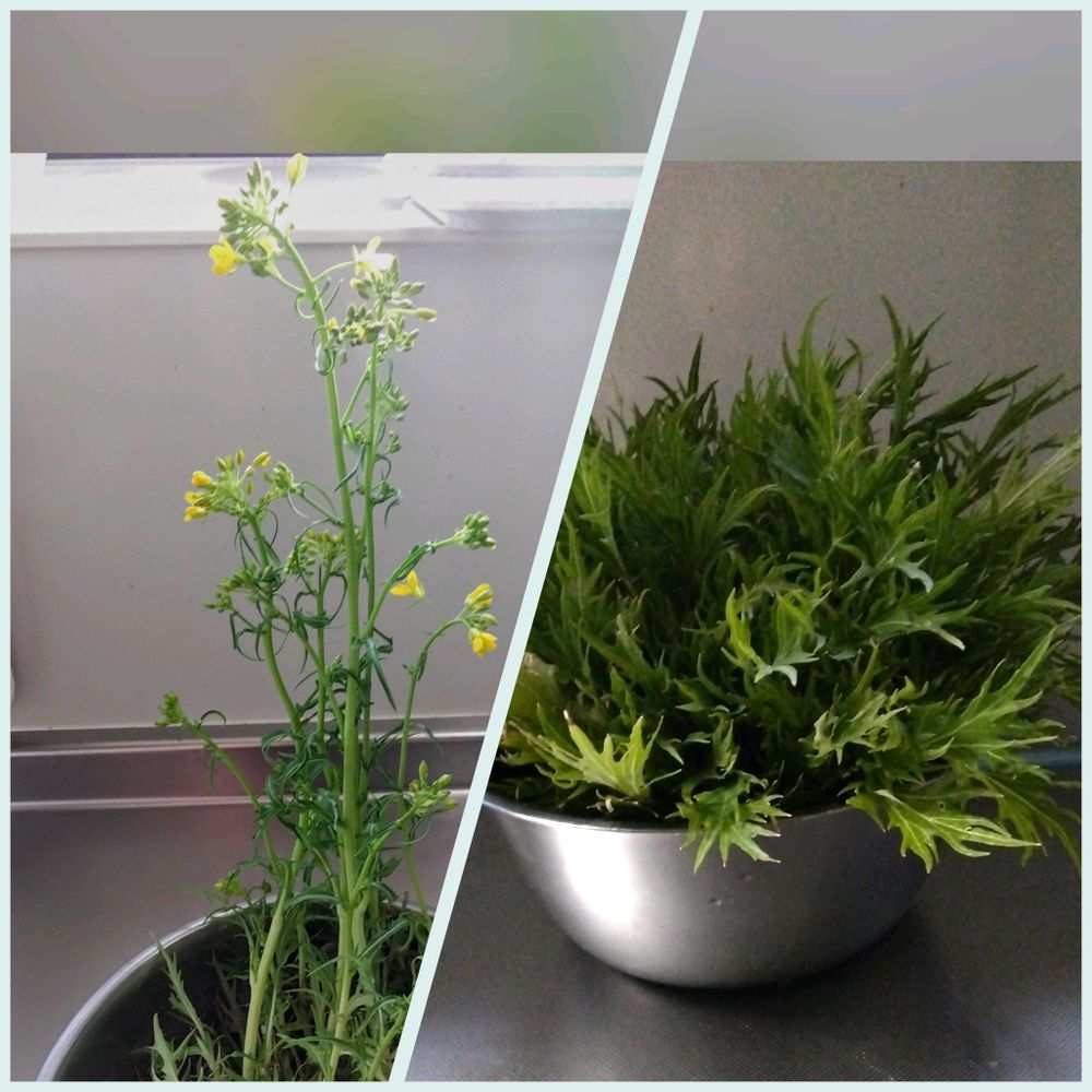 ②こちらはボールに放置して花が咲き始めた水菜💦